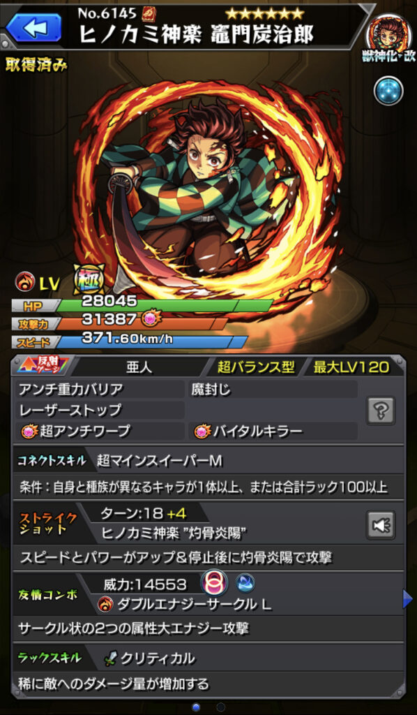 獣神化改になりSSの自強化倍率が下がるという珍しい変化をとげた炭次郎ですが