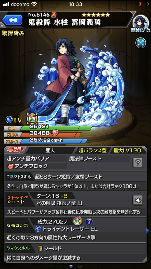 獣神化時と比べるとHP,攻撃力共に2000程強化されスピードが30程上がっています