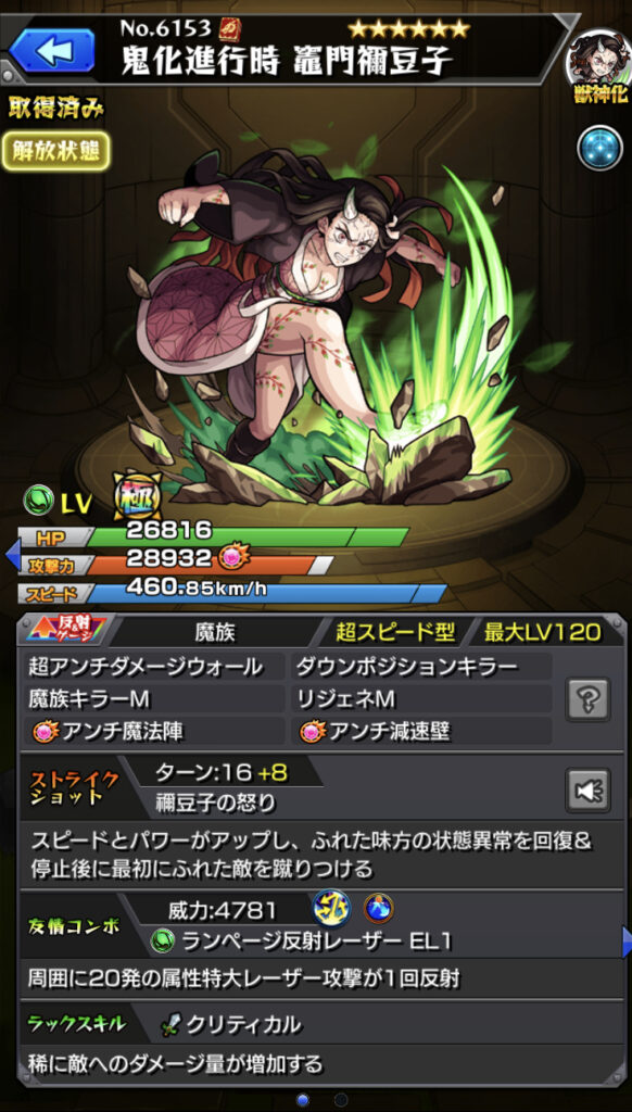 一応キラー2つを素アビで持っているので画面下半分にいる魔族になら3倍の威力が出ます