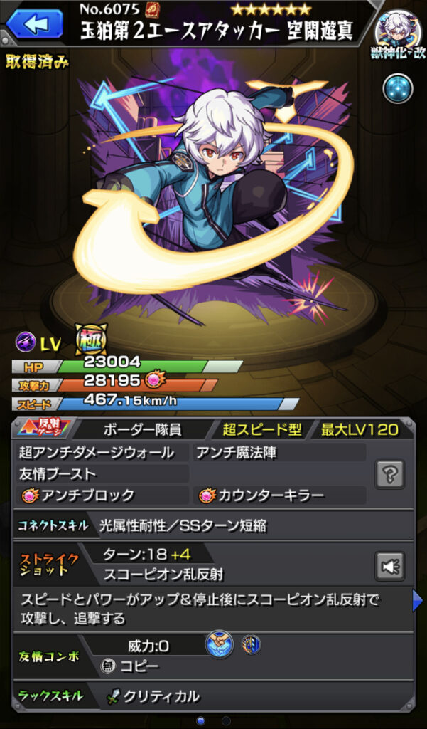 今回のコラボの中では弱めですがモンスト全体で見ると結構強い部類に入ってくると思います。