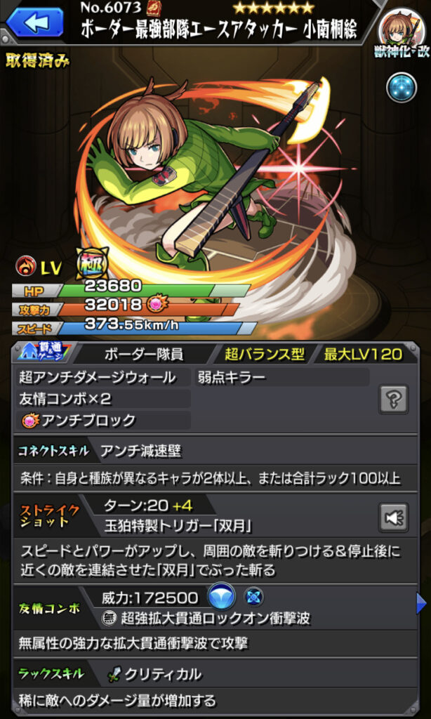 今回のコラボキャラの中で獣神化改になって一番評価が上がったのは間違いなく小南先輩です